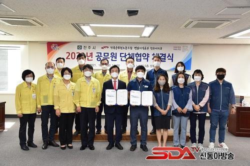 [½Åµ¿¾Æ¹æ¼Û´º½º=¼­È¿°æ ±âÀÚ] ÁøÁÖ½Ã¿Í Àü±¹°ø¹«¿ø³ëµ¿Á¶ÇÕ ÁøÁÖ½ÃÁöºÎ´Â ÁøÁÖ½Ãû »óȲ½Ç¿¡¼­ Á¶±ÔÀÏ ½ÃÀå°ú ±è¿µÅ ÁöºÎÀåÀ» ºñ·ÔÇÑ ³ë»ç ¾çÃø ±³¼·À§¿øÀÌ Âü¼®ÇÑ °¡¿îµ¥ 2021³â ´ÜüÇù¾à ü°á½ÄÀ» °¡Á³½À´Ï´Ù.