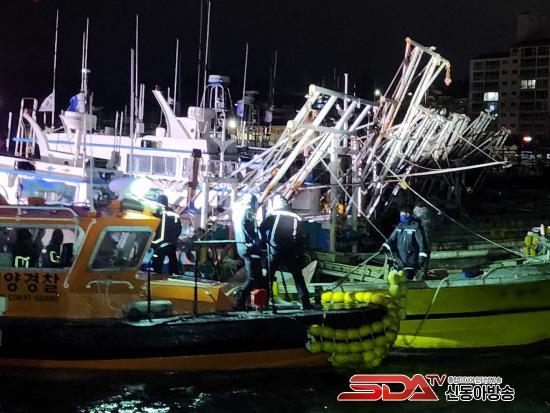 ¿©¼öÇØ°æÀº ½Å°íÁ¢¼ö ÈÄ °æºñÇÔÁ¤°ú ±¸Á¶´ë¸¦ Áï½Ã ±ÞÆÄÇÏ¿© ¼±ÂøÀå ¾à 50m ÇØ»ó¿¡ Ç¥·ù ÁßÀÎ Àá¼ö±â ¾î¼± 8ôÀÌ ºÙ¾îÀÖ´Â »óÅ·Πǥ·ùÇÑ °ÍÀ» È®ÀÎÇÏ°í ¼±¹ÚÀÌ ´õ ÀÌ»ó ¹Ð¸®Áö ¾Êµµ·Ï ¾ÈÀü Á¶Ä¡Çß´Ù.