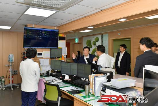 Á¤ ½ÃÀåÀº º´¿ø ÇöÀåÀ» ²Ä²ÄÈ÷ »ìÇÇ°í º´¿øÀå°ú ÀÌ»çÀå, °£È£ºÎÀå µî°ú °£´ãȸ ÀÚ¸®¸¦ ¸¶·Ã, ¾ß°£ ÀÀ±Þ½Ç ÀÌ¿ë ½Ã È¯ÀÚµéÀÇ ¾ÈÀüÀ» À§ÇÑ º´¿ø Àα٠º¸¾Èµî ¼³Ä¡ µî¿¡ ´ëÇÑ °ÇÀÇ»çÇ×À» ûÃëÇß´Ù.