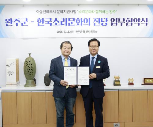13ÀÏ ¾ç ±â°üÀº ¿ÏÁÖ±º Àü·«È¸Àǽǿ¡¼ ¾Æµ¿Ä£Èµµ½Ã ¹®ÈÁö¿ø»ç¾÷ ¡®¼Ò¸®¹®È¿Í ÇÔ²²ÇÏ´Â ¿ÏÁÖ¡¯ ÃßÁøÀ» À§ÇÑ ¾÷¹«Çù¾àÀ» ü°áÇß´Ù.