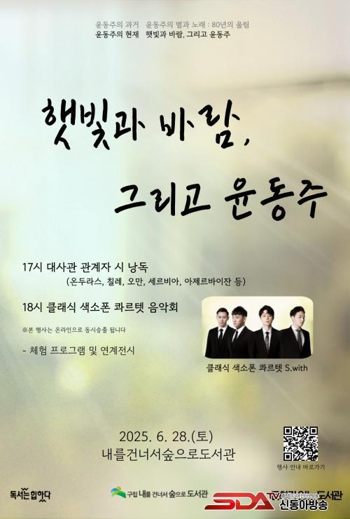 µµ¼­°ü °ü°èÀÚ´Â ¡°À̹ø Çà»ç¸¦ ÅëÇØ À±µ¿ÁÖ ½ÃÀÎÀÇ »î°ú ¹®ÇÐÀ» µ¹¾Æº¸¸ç, ¿À´ÃÀÇ À±µ¿ÁÖ¿¡ ´ëÇÑ Çö´ëÀûÀÎ Àǹ̸¦ µÇ»õ±â°í ÀçÁ¶¸íÇÏ´Â ½Ã°£ÀÌ µÇ±æ ¹Ù¶õ´Ù¡±¶ó°í ¸»Çß´Ù.