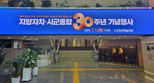 À̹ø Çà»ç´Â 1995³â ¹Î¼± Áö¹æÀÚÄ¡ÀÇ º»°Ý ½ÃÇà°ú ³ªÁÖ½Ã¿Í ³ªÁÖ±º ÅëÇÕ ÀÌÈÄ Áö³ 30³â°£ÀÇ º¯È¿Í ¼º°ú¸¦ ½Ã¹Î°ú ÇÔ²² °øÀ¯ÇÏ°í »õ·Î¿î 30³âÀ» ÇâÇÑ ºñÀüÀ» ¼±Æ÷ÇÏ´Â ÀÇ¹Ì ÀÖ´Â ÀÚ¸®´Ù.