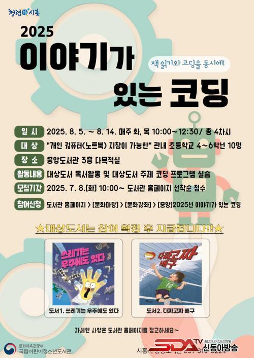 [½Åµ¿¾Æ¹æ¼Û ½ÃÈï½Ã=À̽ŵ¿±âÀÚ] ½ÃÈï½ÃÁß¾Óµµ¼­°üÀº ¿©¸§¹æÇÐÀ» ¸Â¾Æ ±¹¸³¾î¸°ÀÌû¼Ò³âµµ¼­°ü °ø¸ð»ç¾÷À¸·Î ¼±Á¤µÈ ¡®À̾߱Ⱑ ÀÖ´Â ÄÚµù¡¯ ÇÁ·Î±×·¥À» ¿À´Â 8¿ù¿¡ ¿î¿µÇÑ´Ù.