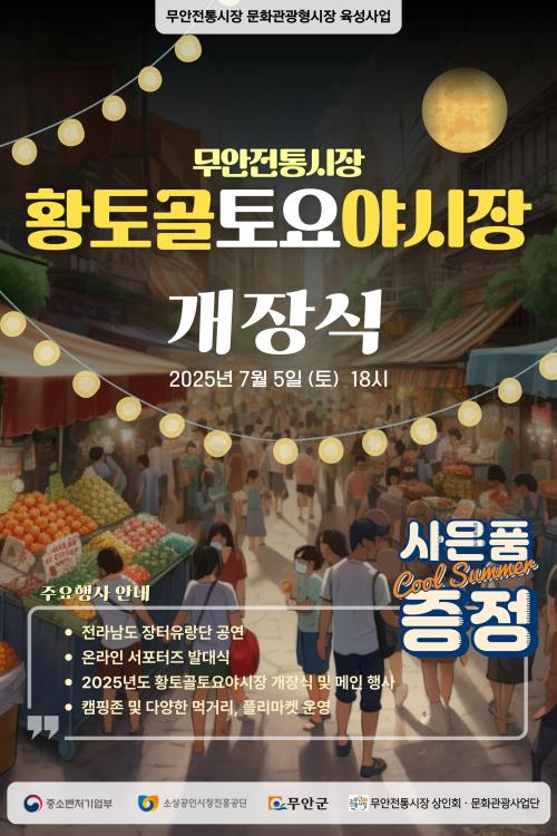 À̹ø Çà»ç´Â ¡®2025³â ¹«¾ÈÀüÅë½ÃÀå ¹®È°ü±¤Çü½ÃÀå À°¼º»ç¾÷¡¯°ú ¿¬°èÇØ Áö¿ª»ó±ÇÀ» Ȱ¼ºÈÇϰí ÀüÅë½ÃÀ常ÀÇ À̾߱â¿Í ¹®È¸¦ »ì·Á ¹®È°ü±¤ ƯȽÃÀåÀ¸·Î µµ¾àÇϱâ À§ÇØ ±âȹµÆ´Ù.