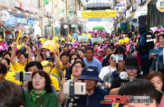 Çà»ç¿¡´Â Á¶±ÔÀÏ ÁøÁÖ½ÃÀåÀ» ºñ·ÔÇØ Áß¾Ó½ÃÀå, ³í°³½ÃÀå, û°ú½ÃÀå, ·Îµ¥¿À°Å¸® µîÀÇ Àα٠»óÀεé°ú 1500¿© ¸íÀÇ ½Ã¹ÎµéÀÌ Âü¿©ÇØ ¾î¿ï¸²°ú È­ÇÕÀÇ ÇѸ¶´çÀ» ÆîÃÆ´Ù.