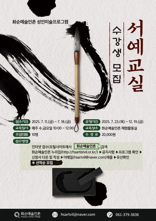 ¼ö° ½ÅûÀº 7¿ù 11ÀÏ(±Ý)ºÎÅÍ 7¿ù 18ÀÏ(±Ý)±îÁöÀ̸ç, ȼø±º¿¡ °ÅÁÖÇÏ´Â ¸¸ 20¼¼ ÀÌ»ó ¼ºÀÎÀÌ¸é ´©±¸³ª ½ÅûÇÒ ¼ö ÀÖ´Ù. ½Åû¼´Â ȼø¿¹¼úÀÎÃÌ ´©¸®Áý(http://hsartistvil.or.kr) °øÁö »çÇ׿¡¼ ³»·Á¹ÞÀ» ¼ö ÀÖÀ¸¸ç, ½Åû ½ÃÀÛÀÏ ¿ÀÀü 9½ÃºÎÅÍ È¼ø¿¹¼úÀÎÃÌ¿¡¼ ¹æ¹®¡¤Á¢¼ö·Î ½ÅûÇÏ¸é µÈ´Ù.