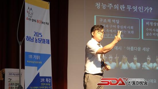 º¯ ±³¼ö´Â °¿¬À» ÅëÇØ ¡®µ¥ÇÁ°ÔÀÎ(Deaf Gain)¡¯ °³³äÀ» ¼Ò°³Çϸç, ³óÀÎÀº û·ÂÀ» »ó½ÇÇÑ Á¸Àç°¡ ¾Æ´Ï¶ó »õ·Î¿î ¾ð¾î¿Í ¹®È·Î Àΰ£ÀÇ Á¸¾ö¼º°ú °¡Ä¡¸¦ È®ÀåÇÏ´Â Á¸ÀçÀÓÀ» °Á¶ÇØ Å« ¿ï¸²À» ÁÖ¾ú´Ù.