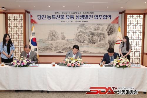 À̳¯ Çù¾à½Ä¿¡´Â ¿À¼ºÈ¯ ´çÁø½ÃÀåÀ» ºñ·ÔÇØ Çѱ¹³ó¼ö»ê½ÄǰÀ¯Åë°ø»ç È«¹®Ç¥ »çÀå, CJÇÁ·¹½Ã¿þÀÌ °¿¬Áß ºÎ»çÀå, ³óÇùÁß¾Óȸ´çÁø½ÃÁöºÎÀå ¹× °ü³» ³óÇùÀå, ³ó¹Î ´ÜüÀå µî 40¿© ¸íÀÌ Âü¼®ÇØ ´çÁø½Ã¿¡¼ »ý»êµÈ ¿ì¼ö ³óƯ»ê¹°ÀÇ ¾ÈÁ¤ÀûÀÎ ÆÇ·Î È®º¸¿Í À¯Åë ±¸Á¶ °³¼±À» À§ÇÑ Çù·ÂÀÇ ¶æÀ» ¸ð¾Ò´Ù.
