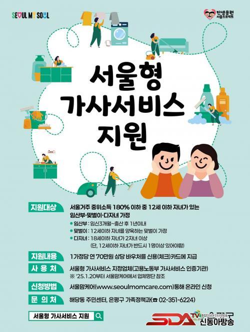 Áö¿ø ´ë»óÀº ¼¿ï½Ã¿¡ °ÅÁÖÇÏ´Â ÁßÀ§¼Òµæ 180% ÀÌÇÏ °¡Á¤ Áß ÀÓ»êºÎ, ¸Â¹úÀÌ °¡Á¤, ´ÙÀÚ³à °¡Á¤ÀÌ´Ù. Áö¿ø ³»¿ëÀº °¡Á¤¹æ¹®À» ÅëÇÑ Ã»¼Ò, ¼³°ÅÁö µî ÀÏ»ó °¡»ç¼ºñ½º·Î, 1°¡±¸´ç 70¸¸ ¿ø »ó´çÀÇ ¹Ù¿ìó°¡ ÀÌ¿ëÀÚ º»ÀÎÀÇ ½Å¿ë¡¤Ã¼Å©Ä«µå¿¡ Áö±ÞµÈ´Ù.