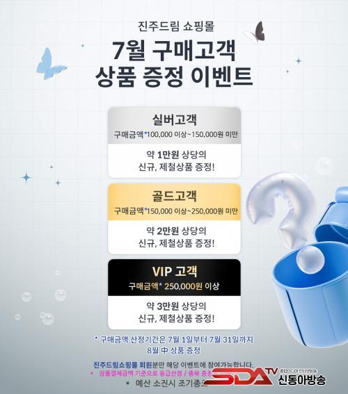 À̹ø À̺¥Æ®´Â ÁøÁֵ帲¼îÇθô¿¡¼ ¿ù 10¸¸ ¿ø ÀÌ»ó »óǰÀ» ±¸¸ÅÇÑ È¸¿øÀ» ´ë»óÀ¸·Î, ±¸¸Å ±Ý¾×¿¡ µû¶ó ÃÖ´ë 3¸¸ ¿ø »ó´çÀÇ ¿ì¼ö »óǰÀ» ÁõÁ¤ÇÏ´Â Çà»ç·Î º°µµ ½Åû ¾øÀÌ À̺¥Æ® ±â°£ ³» ¼îÇθôÀ» ÀÌ¿ëÇÑ È¸¿øÀ̸é ÀÚµ¿À¸·Î Âü¿©µÈ´Ù.