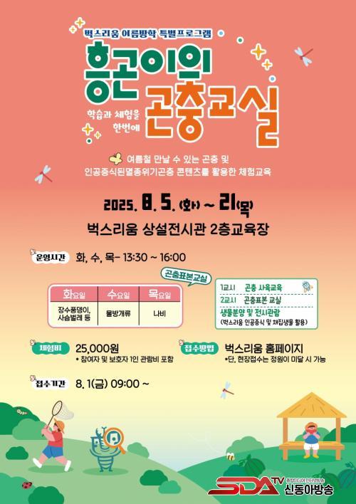 À̹ø ÇÁ·Î±×·¥Àº ¹÷½º¸®¿ò »ó¼³Àü½Ã°ü 2Ãþ ±³À°Àå¿¡¼ ÁøÇàµÇ¸ç ¿©¸§Ã¶¿¡ ¸¸³¯ ¼ö ÀÖ´Â ´Ù¾çÇÑ °ïÃæÀÇ »ýÅÂ¿Í »çÀ° ¹æ¹ýÀ» ¹è¿ì°í Á÷Á¢ üÇèÇÒ ¼ö ÀÖµµ·Ï ±¸¼ºµÆ´Ù. ÃʵîÇб³ Á¤±Ô ±³°ú°úÁ¤°ú ¿¬°èÇØ ÇнÀ È¿°ú¸¦ ³ô¿´À¸¸ç, ¿©¸§¹æÇÐ ±â°£ ¾ÆÀ̵鿡°Ô À¯ÀÍÇÑ ÀÚ¿¬ ÇнÀÀÇ ±âȸ¸¦ Á¦°øÇÒ ¿¹Á¤ÀÌ´Ù.