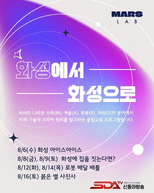 À̹ø ¿©¸§ºÎÅÍ »õ·Ó°Ô ¼±º¸ÀÌ´Â ½ÉÈ­±³À° ¡®MARS LAB¡¯Àº ¼öÇÐ(Math), ¿¹¼ú(Art), ·Îº¿(Robot), °úÇÐ(Science) ºÐ¾ßÀÇ ¿ø¸®¿Í ¹Ì·¡ ±â¼úÀ» ޱ¸ÇÏ´Â À¶ÇÕ ±³À° ÇÁ·Î±×·¥ÀÌ´Ù.