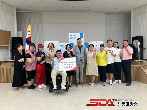[½Åµ¿¾Æ¹æ¼Û ½ÃÈï½Ã=À̽ŵ¿±âÀÚ] µµºÎ ÁÖ½Äȸ»ç´Â (»ç)Çѱ¹±³ÅëÀå¾ÖÀÎÇùȸ ½ÃÈï½ÃÁöºÎ¿Í ¿¬°èÇØ Áö³­ 7¿ù 28ÀÏ ½ÃÈï½Ã ÀºÇൿ ÇàÁ¤º¹Áö¼¾ÅÍ¿¡ Àå¾ÖÀΰú Ãë¾à°èÃþÀ» À§ÇÑ ¸¶½ºÅ©(KF94¸¶½ºÅ© 8,500Àå¤ýN95¸¶½ºÅ© 1,500Àå) 1¸¸ ÀåÀ» ÈÄ¿øÇß´Ù.