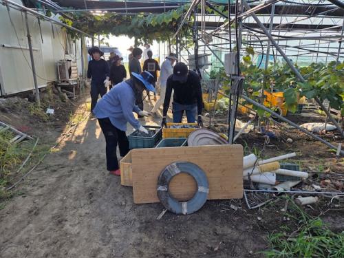 À̹ø º¹±¸Áö¿øÀº ³ó¾÷À¯Åë°ú, ³ó¾÷±â¼ú¼¾ÅÍ ¹× ³óÇù Á÷¿ø±îÁö ÃÑ 30¿© ¸íÀÌ Âü¿©ÇØ Ä§¼ö ÇÇÇØ¸¦ ÀÔÀº ¿°»ê¸éÀÇ »þÀθӽºÄÏ ÇϿ콺(1.2ha)¿¡¼ Åä»ç Á¦°Å, ÇϿ콺 ³»ºÎ ÀÚÀç ¹× Æó±â¹° ó¸® µî ½ÇÁúÀûÀÎ º¹±¸¿Í ÀÏ»ó ȸº¹À» Áö¿øÇÏ¸ç ±¸½½¶¡À» Èê·È´Ù.