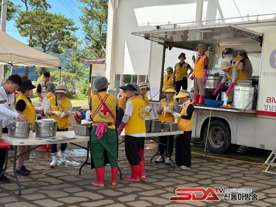 ±èÇØ½ÃÇùÀÇȸ ¼Ò¼Ó ÀÚ¿øºÀ»çÀÚ 30¸íÀÌ Âü¿©ÇØ ÃÖ±Ù ÁýÁßÈ£¿ì·Î Å« ÇÇÇØ¸¦ ÀÔÀº ÇÕõÁö¿ª Áֹεé°ú º¹±¸ ÀÛ¾÷¿¡ Èû¾²´Â ÀÚ¿øºÀ»çÀڵ鿡°Ô Áᫎ 400ÀκÐ, ¼®½Ä 100ÀκÐÀ» Á¦°øÇß´Ù. ±Þ½ÄÀº ±ÕÇü ÀâÈù ½Ä´Ü¿¡ À§»ý°ú ¾ÈÀüÀ» öóÈ÷ ÁؼöÇØ ÀÌ·ïÁ³´Ù.