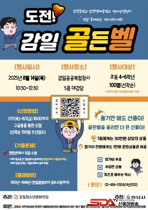 [½Åµ¿¾Æ¹æ¼Û Çϳ²½Ã=À̽ŵ¿±âÀÚ] Çϳ²½Ã °¨ÀÏû¼Ò³â¹®È­ÀÇÁýÀÌ ±¤º¹ÀýÀ» ±â³äÇØ °¨Àϵ¿ û¼Ò³âµé°ú ÇÔ²²Çϴ Ưº°ÇÑ ¿ª»ç ÄûÁî´ëȸ¡®µµÀü! °¨ÀÏ °ñµçº§¡¯À» °³ÃÖÇÑ´Ù. À̹ø Çà»ç´Â 8¿ù 14ÀÏ(¸ñ) ¿ÀÀü 10½Ã 30ºÐ, °¨Àϰø°øº¹ÇÕû»ç 5Ãþ ´ë°­´ç¿¡¼­ ¿­¸°´Ù.