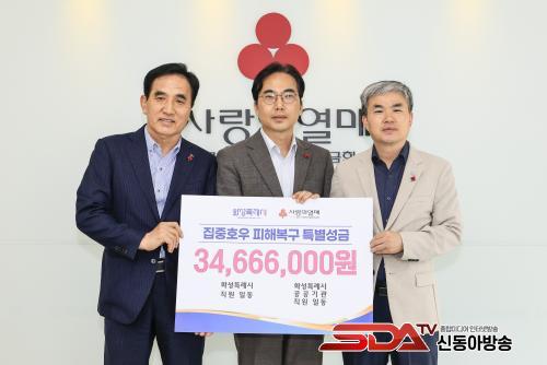 [½Åµ¿¾Æ¹æ¼Û=ÀÌÀçö±âÀÚ] È­¼ºÆ¯·Ê½Ã(½ÃÀå Á¤¸í±Ù)´Â 31ÀÏ »çȸº¹Áö°øµ¿¸ð±Ýȸ °æ±âÁöȸ¿¡ ÃÖ±Ù ÁýÁßÈ£¿ì·Î ÀÎÇØ Å« ÇÇÇØ¸¦ ÀÔÀº ÁֹεéÀ» À§ÇÑ Æ¯º°¼º±Ý 3,466¸¸ ¿øÀ» Àü´ÞÇß´Ù.