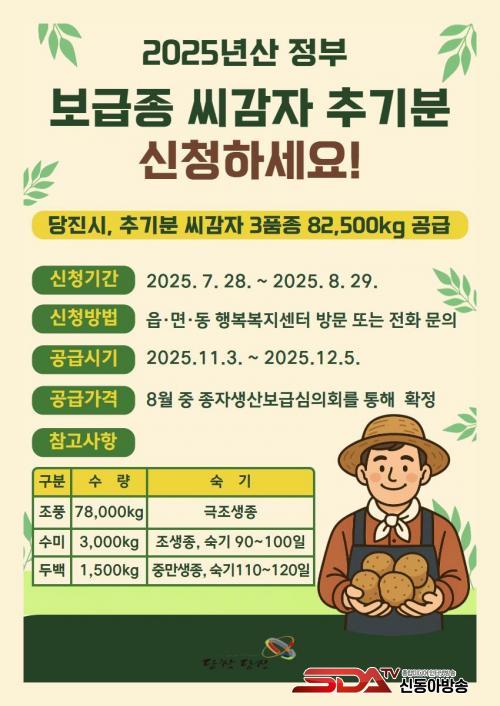 À̹ø¿¡ °ø±ÞµÇ´Â ¾¾°¨ÀÚ´Â °¿øµµ°¨ÀÚÁ¾ÀÚÁøÈï¿ø¿¡¼ »ý»êµÈ ¿ì·® ¾¾°¨ÀÚ·Î ½Ã¼³ ¹× Á¶±â Àç¹è¿ëÀ¸·Î ÀûÇÕÇϸç, °ø±Þ ±â°£Àº 11¿ù ÃʺÎÅÍ 12¿ù ÃʱîÁö´Ù. °ø±Þ ǰÁ¾Àº Á¶Ç³ 78,000kg(3,900¹Ú½º/20kg), ¼ö¹Ì 3,000kg(150¹Ú½º/20kg), µÎ¹é 1,500kg(75¹Ú½º/20kg)À¸·Î ÃÑ 3ǰÁ¾ 82,500kgÀÌ´Ù.