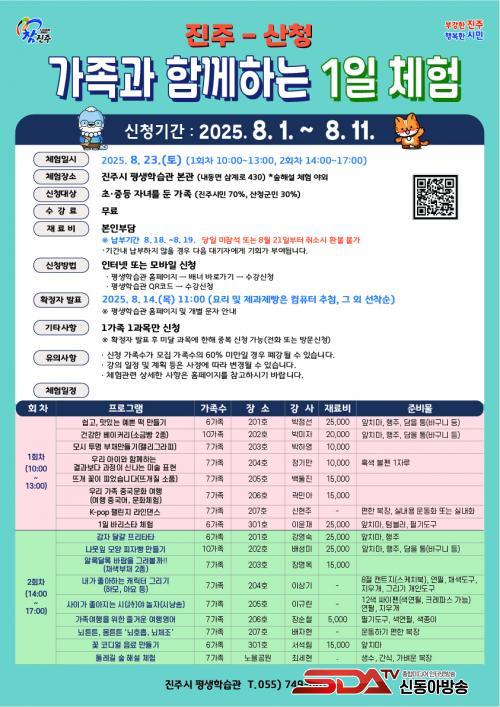 °¡Á·°ú ÇÔ²²ÇÏ´Â 1ÀÏ Ã¼ÇèÀº ÁøÁÖ¿Í »êû±ºÀÇ »ó»ý ¹ßÀü °øµ¿ »ç¾÷À¸·Î ÁøÁֽùλӸ¸ ¾Æ´Ï¶ó »êû±º¹Îµµ Âü¿©ÇÒ ¼ö ÀÖÀ¸¸ç, 21³â ÇϹݱ⿡ ½ÃÀÛÇÏ¿© ÇöÀç±îÁö 134Â÷ ÃÑ 1678¸íÀÌ Âü¿©Çß´Ù.