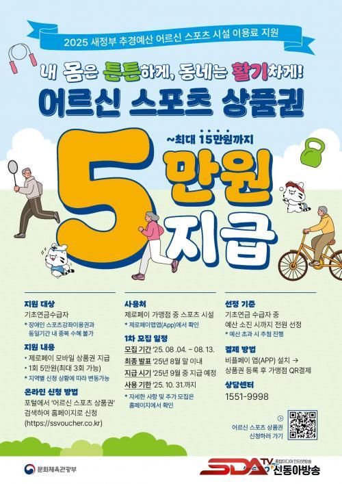 Áö¿ø ´ë»óÀº °ü³» 65¼¼ ÀÌ»ó ±âÃÊ¿¬±Ý¼ö±ÞÀÚ´Ù. »óǰ±Ç ½ÅûÀº 4ÀϺÎÅÍ ¿À´Â 13ÀϱîÁö Æ÷ÅлçÀÌÆ®¿¡¼ ¡®¾î¸£½Å ½ºÆ÷Ã÷ »óǰ±Ç¡¯À» °Ë»öÇϰųª Àü¿ë ´©¸®Áý(ssvoucher.co.kr)À» ÅëÇØ¼ ÇÏ¸é µÈ´Ù. Áö±ÞµÈ »óǰ±ÇÀº 9¿ùºÎÅÍ Áï½Ã »ç¿ëÇÒ ¼ö ÀÖ°í, »ç¿ë ±âÇÑÀº 10¿ù 31ÀϱîÁö´Ù.