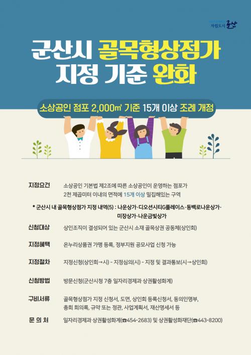 ½Ã´Â ÃÖ±Ù ¡®±º»ê½Ã °ñ¸ñÇü»óÁ¡°¡ ÁöÁ¤¿¡ °üÇÑ Á¶·Ê¡¯ °³Á¤À» ÅëÇØ ÁöÁ¤ ±âÁØÀ» ±âÁ¸ 2,000§³ À̳» ¸éÀû¿¡ ¼Ò»ó°øÀÎÀÌ ¿î¿µÇÏ´Â Á¡Æ÷ »ó¾÷Áö¿ª 25°³ ÀÌ»ó, ºñ»ó¾÷Áö¿ª 20°³ ÀÌ»ó ¹ÐÁý¿¡¼ 15°³ ÀÌ»óÀ¸·Î ¹ÐÁý ±âÁØÀ» ¿ÏÈÇß´Ù.