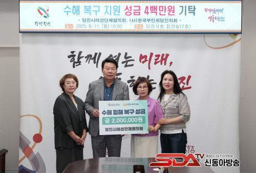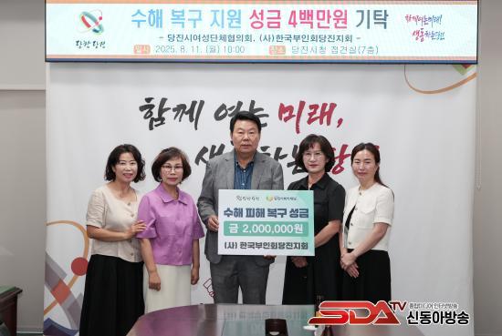 [½Åµ¿¾Æ¹æ¼Û=ÀÌÀçö±âÀÚ] ´çÁø½Ã¿©¼º´ÜüÇùÀÇȸ(ȸÀå ±èÁ¾¼±)¿Í (»ç)Çѱ¹ºÎÀÎȸ´çÁøÁöȸ(ȸÀå ±èÁ¾¼±)´Â 11ÀÏ ´çÁø½Ãû 7Ãþ Á¢°ß½Ç¿¡¼­ ¼öÇØ º¹±¸ Áö¿øÀ» À§ÇØ ÃÑ 400¸¸ ¿øÀÇ ¼º±ÝÀ» ±âŹÇß´Ù.