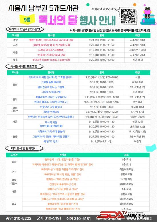 [½Åµ¿¾Æ¹æ¼Û ½ÃÈï½Ã=À̽ŵ¿±âÀÚ] ½ÃÈï½Ã´Â 9¿ù ¡®µ¶¼­ÀÇ ´Þ¡¯À» ¸Â¾Æ ³²ºÎ±Ç 5°³ µµ¼­°ü¿¡¼­ Ã¥°ú ÇÔ²² Áñ±æ ¼ö ÀÖ´Â °ø¿¬, Àü½Ã, üÇè ÇÁ·Î±×·¥ µî ´Ùä·Î¿î ¹®È­Çà»ç¸¦ ¿î¿µÇÑ´Ù. À̹ø Çà»ç´Â ½Ã¹Î ´©±¸³ª Ã¥°ú ÀÚ¿¬½º·´°Ô °¡±î¿öÁú ¼ö ÀÖµµ·Ï ¸¶·ÃµÆ´Ù.