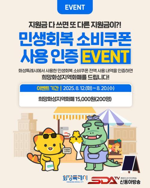 ȼºÆ¯·Ê½Ã¿¡¼ »ç¿ëÇÑ ¹Î»ýȸº¹ ¼ÒºñÄíÆù Àü¾× »ç¿ë³»¿ªÀ» ÀÎÁõÇϸé Ãß÷À» ÅëÇØ ÃÑ 200¸í¿¡°Ô ¡®Èñ¸ÁȼºÁö¿ªÈÆó¡¯ 1¸¸ 5õ ¿øÀ» ÁõÁ¤ÇÑ´Ù. Áö±ÞµÈ Áö¿ªÈÆó´Â °ü³» °¡¸ÍÁ¡¿¡¼ ÀÚÀ¯·Ó°Ô »ç¿ëÇÒ ¼ö ÀÖ´Ù.