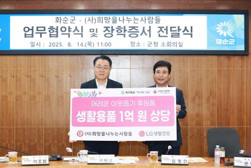 À̳¯ Çù¾à½Ä¿¡¼´Â ÀåÇлýÀ¸·Î ¼±Á¤µÈ 15¸íÀÇ Çлý°ú Çкθ𰡠ÇÔ²² Âü¼®ÇÑ °¡¿îµ¥, ¸Å¿ù °¢ 5¸¸ ¿ø¾¿ 2³â°£ Áö¿øµÇ´Â ÀåÇÐ±Ý 1,800¸¸ ¿ø°ú 3¸í¿¡°Ô 360¸¸ ¿ø »ó´çÀÇ ÄÄÇ»Å͸¦ Àü´ÞÇß´Ù. ¶ÇÇÑ °ü³» Àú¼ÒµæÃþ ÁÖ¹ÎÀ» À§ÇØ 2¾ï ¿ø »ó´çÀÇ ÈÄ¿ø ¹°Ç°À» Áö¿øÇÒ ¿¹Á¤ÀÌ´Ù.