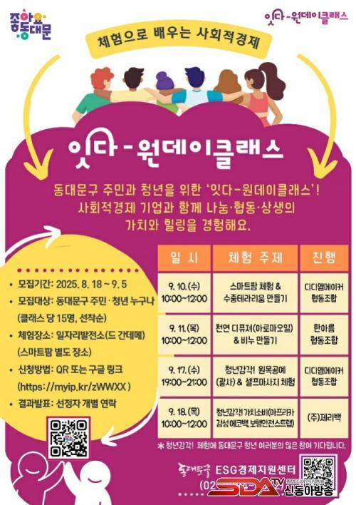 ¿øµ¥ÀÌŬ·¡½º´Â 9¿ù 10ÀϺÎÅÍ 18ÀϱîÁö DDMÀÏÀÚ¸®¹ßÀü¼Ò(µ¿´ë¹®±¸ ´ä½Ê¸®·Î38±æ 19, Bµ¿ ÁöÇÏ)¿¡¼ ÃÑ 4ȸ ÁøÇàµÈ´Ù. ÁÖ¿ä ÇÁ·Î±×·¥Àº ½º¸¶Æ®ÆÊ üÇè ¹× ¼öÁßÅ׶󸮿ò ¸¸µé±â(10ÀÏ), õ¿¬ µðÇ»Àú¡¤ºñ´© ¸¸µé±â(11ÀÏ), û³â°¨°¢! ¿ø¸ñ°ø¿¹¡¤¼¿ÇÁ¸¶»çÁö üÇè(17ÀÏ), û³â°¨°¢! ¾ÆÇÁ¸®Ä« °¨¼º ¿¡Äڹ顤º¸Çà¾ÈÀü ½ºÆ®·¦ ¸¸µé±â(18ÀÏ) µîÀÌ´Ù.