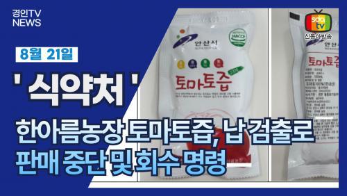 ½ÄǰÀǾàǰ¾ÈÀüó(óÀå ¿ÀÀ¯°æ)´Â °æ±âµµ ¾È»ê½Ã ¼ÒÀç ½ÄǰÁ¦Á¶¡¤°¡°ø¾÷ü ¡®ÇѾƸ§³óÀ塯ÀÌ »ý»ê¡¤À¯ÅëÇÑ ¡®Å丶ÅäÁó(½ÄǰÀ¯Çü: °ú¡¤Ã¤ÁÖ½º)¡¯¿¡¼ ³³ÀÌ Çã¿ë ±âÁØÀ» Ãʰú °ËÃâÇÔ¿¡ µû¶ó ÇØ´ç Á¦Ç°ÀÇ ÆÇ¸Å Áß´Ü ¹× ȸ¼ö Á¶Ä¡¸¦ ÁøÇàÇÑ´Ù°í ¹àÇû´Ù.