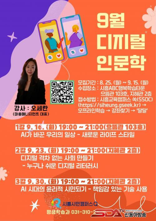 À̹ø 2Çб⠰Á´ µðÁöÅÐ Àι®ÇÐ, »ó½Ç Àι®ÇÐ, ¸¶ÄÉÆÃ Àι®ÇÐÀ» ÁÖÁ¦·Î ÁøÇàµÇ¸ç, 9¿ùºÎÅÍ 11¿ù±îÁö ¸Å¿ù 3ȸ¾¿ È¿äÀÏ ¿ÀÈÄ 7½ÃºÎÅÍ 9½Ã±îÁö ½ÃÈïABCÇູÇнÀŸ¿î À¸¶ä°ü°ú ÁöÇý°ü¿¡¼ ¹«·á·Î ¿¸°´Ù.
