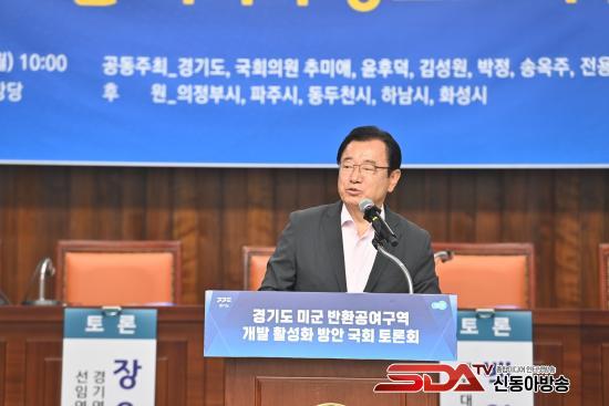 ÀÌÇöÀç ½ÃÀåÀº À̳¯ ±¹È¸µµ¼°ü¿¡¼ ¿¸° ¡®°æ±âµµ ¹Ì±º ¹Ýȯ°ø¿©±¸¿ª °³¹ß Ȱ¼ºÈ ¹æ¾È ±¹È¸Åä·Ðȸ¡¯¿¡¼ ¡°¹Ýȯ°ø¿©±¸¿ªÀº ±¹°¡¾Èº¸¸¦ À§ÇØ Æ¯º°ÇÑ Èñ»ýÀ» °¨³»ÇÑ Áö¿ªÀÌÁö¸¸, °³¹ßÁ¦Çѱ¸¿ª°ú °ú¹Ð¾ïÁ¦±Ç¿ª µî °¢Á¾ ±ÔÁ¦°¡ °ãÄ¡¸é¼ Áö¿ª ¹ßÀüÀÌ ´Ê¾îÁö°í ÀÖ´Ù¡±¸ç À̰°ÀÌ ¸»Çß´Ù.