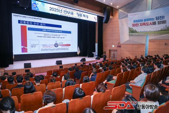 À̳¯ Ư°Àº °øÁ÷ÀÚÀÇ Ã»·ÅÀǽÄÀ» ³ôÀ̰í û·ÅÇÑ °øÁ÷¹®È È®¸³À» À§ÇØ ¸¶·ÃµÈ °ÍÀ¸·Î, ´çÁø½Ã °øÁ÷ÀÚ 500¿© ¸íÀÌ Âü¼®ÇÏ¿´´Ù. 1ºÎ¿¡¼´Â ¿À¼ºÈ¯ ´çÁø½ÃÀåÀÌ ¡¸Ã»·ÅÇÑ °øÁ÷¹®È È®¸³À» À§ÇÑ °øÁ÷ÀÚÀÇ ÀÚ¼¼¡¹¸¦ ÁÖÁ¦·Î °¿¬°ú ´çºÎ ¸»¾¸À» Àü´ÞÇßÀ¸¸ç, 2ºÎ¿¡¼´Â À̼±Çü °»ç°¡ ¡¸»ç·Ê·Î ¾Ë¾Æº¸´Â ¹ÝºÎÆÐ ¹ý·É°ú °©Áú ¿¹¹æ±³À°¡¹À» ÁÖÁ¦·Î °¿¬À» ÁøÇàÇß´Ù.