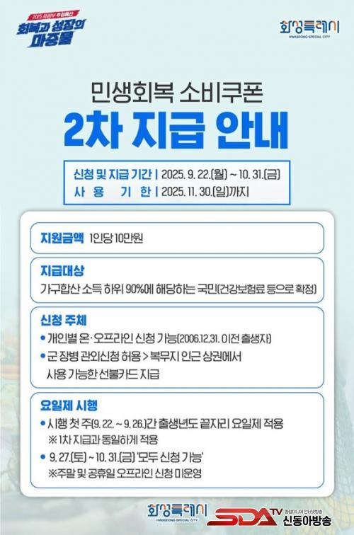 2Â÷ ¼ÒºñÄíÆù Áö±Þ¾×Àº 1Àδç 10¸¸ ¿øÀÌ´Ù. 22ÀϺÎÅÍ 10¿ù 31ÀϱîÁö ½ÅûÇÒ ¼ö ÀÖÀ¸¸ç, ½Å¿ë¡¤Ã¼Å©Ä«µå, Áö¿ªÈÆó, ¼±ºÒÄ«µå °¡¿îµ¥ ¼±ÅÃÇÒ ¼ö ÀÖ´Ù. »ç¿ë ±âÇÑÀº 11¿ù 30ÀϱîÁö´Ù.