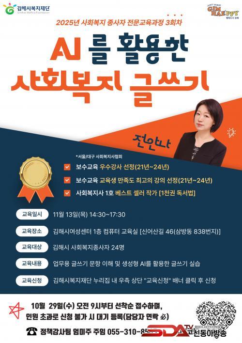 [½Åµ¿¾Æ¹æ¼Û °æ³²±èÇØ=³²±Ã¿µ±â±âÀÚ] (Àç)±èÇØ½Ãº¹ÁöÀç´ÜÀº »çȸº¹Áö Á¾»çÀÚÀÇ ±Û¾²±â ¿ª·®°ú ÀΰøÁö´É Ȱ¿ë ´É·Â °­È­¸¦ À§ÇØ ¿À´Â 11¿ù 13ÀÏ(¸ñ) ¡®AI¸¦ Ȱ¿ëÇÑ »çȸº¹Áö ±Û¾²±â¡¯ Àü¹®±³À°À» °³ÃÖÇÒ ¿¹Á¤À̶ó°í ¹àÇû´Ù.