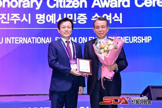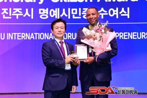Á¶±ÔÀÏ ÁøÁÖ½ÃÀåÀº ÁøÁÖ K-±â¾÷°¡Á¤½ÅÀ» ¼¼°è¿¡ ¾Ë¸®´Â µ¥ Å« ¿ªÇÒÀ» ÇÑ °ø·Î¸¦ ÀÎÁ¤ÇØ Çѽ¼ö Àü ±¹¹«ÃѸ®¿Í À©½½·Î »çÀüÆ® Àü ¹Ì±¹ Áß¼Ò±â¾÷û(SBA) Áß¼Ò±â¾÷ ÃÖ°í ¼ö¼®¿¡°Ô ¸í¿¹ ½Ã¹ÎÁõÀ» ¼ö¿©Çß´Ù.