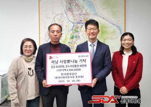 [½Åµ¿¾Æ¹æ¼Û Çϳ²½Ã=À̽ŵ¿±âÀÚ] Áö³­ 30ÀÏ, Çѱ¹È¯°æ°ø´Ü ¡®È¯°æ»ç¶û ÀÌ¿ô»ç¶û¡¯ µ¿È£È¸´Â Çϳ²½Ã °ü³» Àú¼Òµæ ¾Æµ¿µé¿¡°Ô ¼º±Ý 450¸¸¿ø°ú ¿Â´©¸®»óǰ±Ç 40¸¸¿øÀ» Àü´ÞÇÏ°í ±âŹ½Ä¸¦ °¡Á³´Ù.