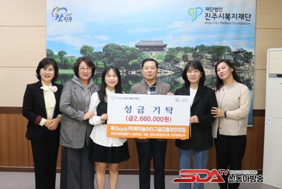 [½Åµ¿¾Æ¹æ¼Û °æ³²ÁøÁÖ=³²±Ã¿µ±â±âÀÚ] ¡®ºÏ(Book)ÀûºÏÀû³îÀÌÅÍ¡¯±¸½½¸ðÀ½ ¾î¸°ÀÌÁý(ÁøÁÖ¼¾Æ®·²À£°¡¾î¸°ÀÌÁý, ÁøÁÖ½ÃÆ¼ÇÁ¶óµð¿ò¾î¸°ÀÌÁý, ÁøÁÖÆ÷·¹³ª¾î¸°ÀÌÁý, »óÆò¾î¸°ÀÌÁý, ¸¶·çŰÁî¾î¸°ÀÌÁý)Àº 7ÀÏ, ±×°£ ¹ÙÀÚȸ¸¦ ÅëÇØ ¸ð±ÝÇÑ ¼º±Ý 266¸¸ ¿øÀ» ÁøÁֽú¹ÁöÀç´Ü¿¡ ±âŹÇß´Ù°í ¹àÇû´Ù.