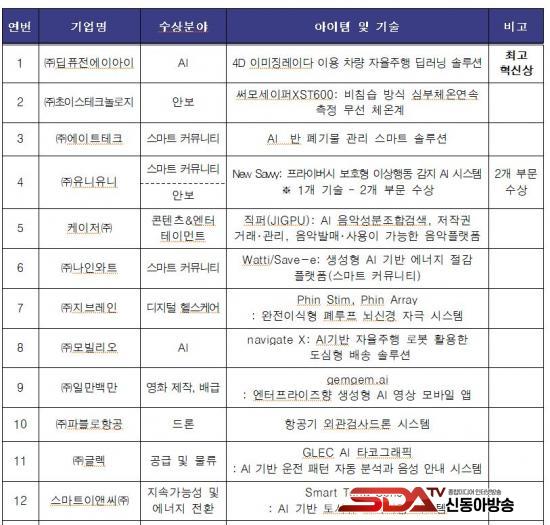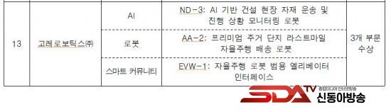 ƯÈ÷ ¡ã¢ßµöÇ»Àü¿¡À̾ÆÀÌ´Â 4D À̹Ì¡·¹ÀÌ´Ù¸¦ ÀÌ¿ëÇÑ Â÷·® ÀÚÀ²ÁÖÇà µö·¯´× ¼Ö·ç¼Ç ±â¼úÀ» ¼±º¸À̸ç AI(ÀΰøÁö´É) ºÐ¾ß¿¡¼ ÃÖ°íÇõ½Å»óÀ» ¹Þ¾Ò´Ù. ¡ã¢ßÀ¯´ÏÀ¯´Ï´Â New Savvy(ÇÁ¶óÀ̹ö½Ã º¸È£Çü ÀÌ»óÇൿ °¨Áö AI ½Ã½ºÅÛ)À» ¼±º¸ÀÌ¸ç ½º¸¶Æ® Ä¿¹Â´ÏƼ, ¸ðµÎ¸¦ À§ÇÑ Àΰ£ ¾Èº¸(Products in Support of Human Security for All)ÀÇ 2°³ ºÎ¹®¿¡¼ Çõ½Å»óÀ» ¹Þ¾Ò´Ù. ¡ã°í·¹·Îº¸Æ½½º¢ß´Â ND-3(AI ±â¹Ý °Ç¼³ ÇöÀå ÀÚÀç ¿î¼Û ¹× ÁøÇà »óȲ ¸ð´ÏÅ͸µ ·Îº¿), AA-2(ÇÁ¸®¹Ì¾ö ÁÖ°Å ´ÜÁö ¶ó½ºÆ®¸¶ÀÏ ÀÚÀ²ÁÖÇà ¹è¼Û ·Îº¿), EVW-1(ÀÚÀ²ÁÖÇà ·Îº¿ ¹ü¿ë ¿¤¸®º£ÀÌÅÍ ÀÎÅÍÆäÀ̽º)°¡ °¢°¢ ÀΰøÁö´É, ·Îº¸Æ½½º, ½º¸¶Æ® Ä¿¹Â´ÏƼ 3°³ ºÎ¹®¿¡ À̸§À» ¿Ã·È´Ù.
