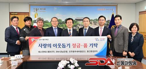 À̹ø ±âŹ½Ä¿¡¼­ ¿¡½º¾Ø¿¡½º¹ëºê(ÁÖ)¿¡¼­ ¼º±Ý 5000¸¸ ¿ø, BNK°æ³²ÀºÇà¿¡¼­ ¼ºÇ°(±èÀå±èÄ¡ 650¹Ú½º, ȯ°¡¾× 2,600¸¸ ¿ø »ó´ç), ÁøÁÖµ¿ºÎ»õ¸¶À»±Ý°í¿¡¼­ ¼º±Ý 1500¸¸ ¿ø, µ¿°Çȯ°æ(ÁÖ)¿¡¼­ ¼º±Ý 1000¸¸ ¿øÀ» Áö¿ª»çȸ Àú¼ÒµæÃþ ¹× Àå¾ÖÀÎ º¹Áö Áö¿øÀ» À§ÇØ ±âŹÇß´Ù.