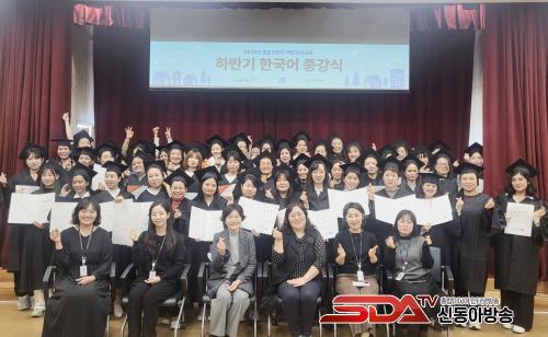 À̹ø Á¾°½Ä¿¡´Â Çѱ¹¾î±³À° ÇÁ·Î±×·¥¿¡ Âü¿©ÇÑ °áÈ¥À̹ÎÀÚ 90¿© ¸íÀÌ Âü¼®ÇØ, ÇÑ Çб⠵¿¾ÈÀÇ ÇнÀ ¼º°ú¸¦ °øÀ¯ÇÏ°í ¼·Î¸¦ °Ý·ÁÇÏ´Â ½Ã°£À» °¡Á³´Ù.