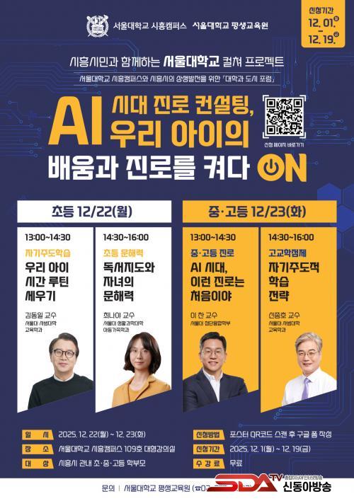 À̹ø ÇÁ·Î±×·¥Àº ½Ã¹Î ¼ö¿ä°¡ ³ôÀº ÇнÀ¤ýÁø·Î ºÐ¾ß¸¦ ¿ì¼±À¸·Î ´Ù·ç¸ç, ¼­¿ï´ë ±³¼öÁøÀÌ Á÷Á¢ °­¿¬ÀÚ·Î Âü¿©ÇØ ÀΰøÁö´É(AI) ½Ã´ë¿¡ ÇÊ¿äÇÑ Áø·Î ÄÁ¼³ÆÃ Á¤º¸¸¦ Àü´ÞÇÑ´Ù. °­¿¬À» ¸ÃÀº ±³¼öµéÀº ÇнÀ ½É¸®¤ý¹®Çط¤ý±³À° ºÐ¾ß¿¡¼­ Æø³ÐÀº ¿¬±¸ °æÇèÀ» º¸À¯ÇÑ ¼­¿ï´ë ±³¼öÁøÀ¸·Î, Àü¹®ÀûÀÌ°í ½Å·Úµµ ³ôÀº ³»¿ëÀ» Àü´ÞÇÒ ¿¹Á¤ÀÌ´Ù.