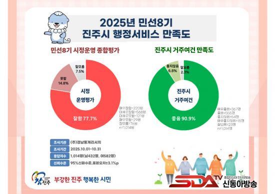 [½Åµ¿¾Æ¹æ¼Û °æ³²ÁøÁÖ=±è¸í¼ö±âÀÚ] ÁøÁֽ𡠽ǽÃÇÑ ¡®2025³â ÇàÁ¤¼­ºñ½º ¸¸Á·µµ Á¶»ç¡¯¿¡¼­ ÁøÁֽà ¹Î¼± 8±â ½ÃÁ¤ ¿î¿µ¿¡ ´ëÇØ ÀÀ´äÀÚÀÇ 77.7%°¡ ¡®ÀßÇϰí ÀÖ´Ù¡¯°í Æò°¡Çß´Ù.