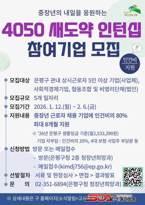 ±è¹Ì°æ ÀºÆò±¸Ã»ÀåÀº ¡°4050 »õµµ¾à ÀÎÅÏ½Ê ÇÁ·Î±×·¥Àº dzºÎÇÑ °æÇè°ú ¿ª·®À» °®Ãá ÁßÀå³â ¼¼´ë°¡ ´Ù½Ã ÀÏÅÍ·Î µµ¾àÇÒ ¼ö ÀÖµµ·Ï µ½´Â »ç¾÷¡±À̶ó¸ç ¡°ÁßÀå³â ÀÎÀç ä¿ëÀ» Èñ¸ÁÇÏ´Â °ü³» ±â¾÷ÀÇ Àû±ØÀûÀÎ Âü¿©·Î Áö¿ª °í¿ë ¾ÈÁ¤°ú »ó»ýÀÇ ÀÏÀÚ¸® ȯ°æÀ» ¸¸µé¾î °¡°Ú´Ù¡±°í ¸»Çß´Ù.