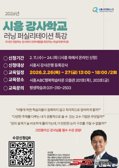±³À°Àº ½ÃÈï½Ã °»çÀºÇà¿¡ µî·ÏµÈ °»ç 30¸í(¼±Âø¼ø)À» ´ë»óÀ¸·Î, 2¿ù 26Àϰú 27ÀÏ ¾çÀϰ£ ¿ÀÈÄ 1½ÃºÎÅÍ 6½Ã±îÁö ÃÑ 10½Ã°£ °úÁ¤À¸·Î ¿î¿µµÈ´Ù. ¼ö° ½ÅûÀº 2¿ù 11ÀϺÎÅÍ 24ÀϱîÁö ½ÃÈï±³À°Ä·ÆÛ½º ¡®½ï(SSOC)¡¯ ´©¸®ÁýÀ» ÅëÇØ ¿Â¶óÀÎÀ¸·Î ½ÅûÇÒ ¼ö ÀÖ´Ù.