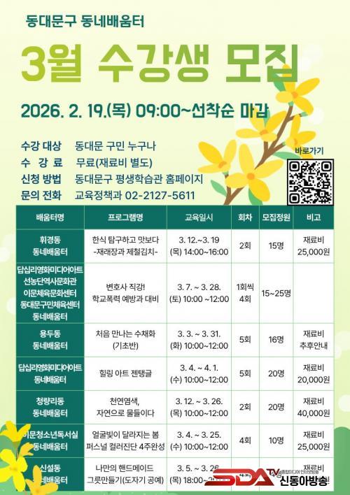 [½Åµ¿¾Æ¹æ¼Û µ¿´ë¹®±¸=À̽ŵ¿±âÀÚ] µ¿´ë¹®±¸°¡ 2¿ù 26ÀϺÎÅÍ ¡®µ¿´ë¹®±¸ Æò»ýÇнÀ°ü »ó¹Ý±â ÇÁ·Î±×·¥¡¯¿¡ Âü¿©ÇÒ ¼ö°­»ýÀ» ¸ðÁýÇÑ´Ù.