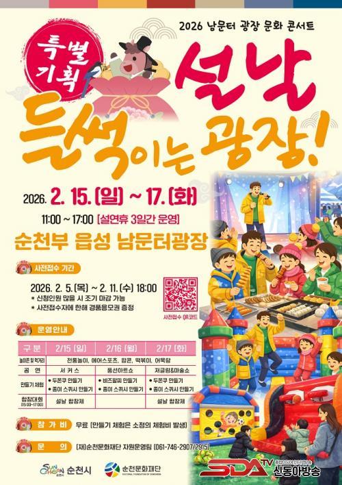 [½Åµ¿¾Æ¹æ¼Û ¼øÃµ=±è¿ëÈÆ ±âÀÚ] ¼øÃµ½Ã´Â ¼³ ¿¬ÈÞ¸¦ ¸Â¾Æ ¡®¼³³¯, µé½âÀÌ´Â ±¤Àå!¡¯ Çà»ç¸¦ ¿À´Â 15ÀϺÎÅÍ 17ÀϱîÁö 3Àϰ£, ¿ÀÀü 11½ÃºÎÅÍ ¿ÀÈÄ 5½Ã±îÁö ¼øÃµºÎ À¾¼º ³²¹®ÅÍ ±¤Àå¿¡¼­ °³ÃÖÇÑ´Ù°í ¹àÇû´Ù.