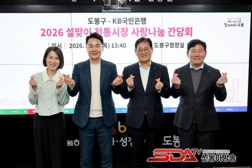 Áö³­ 12ÀÏ ¡®¼³¸ÂÀÌ ÀüÅë½ÃÀå »ç¶û³ª´®¡¯ °£´ãȸ¿¡¼­ ¿À¾ð¼® µµºÀ±¸Ã»Àå°ú KB±¹¹ÎÀºÇà °ü°èÀÚµéÀÌ ´Üü ±â³ä»çÁøÀ» Âï°í ÀÖ´Ù(2026. 2. 12. µµºÀ±¸Ã» ±¸Ã»Àå½Ç)(»çÁø ¿ÞÂÊ¿¡¼­ µÎ ¹øÂ° ¿À¾ð¼® µµºÀ±¸Ã»Àå)