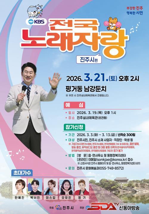 ÁøÁֽô ¿À´Â 3¿ù 21ÀÏ Åä¿äÀÏ ¿ÀÈÄ 2½Ã, Æò°Åµ¿ ³²° µÐÄ¡¿¡¼ ¡®KBS Àü±¹³ë·¡ÀÚ¶û ÁøÁֽà Æí¡¯À» °³ÃÖÇÑ´Ù°í ¹àÇû´Ù.